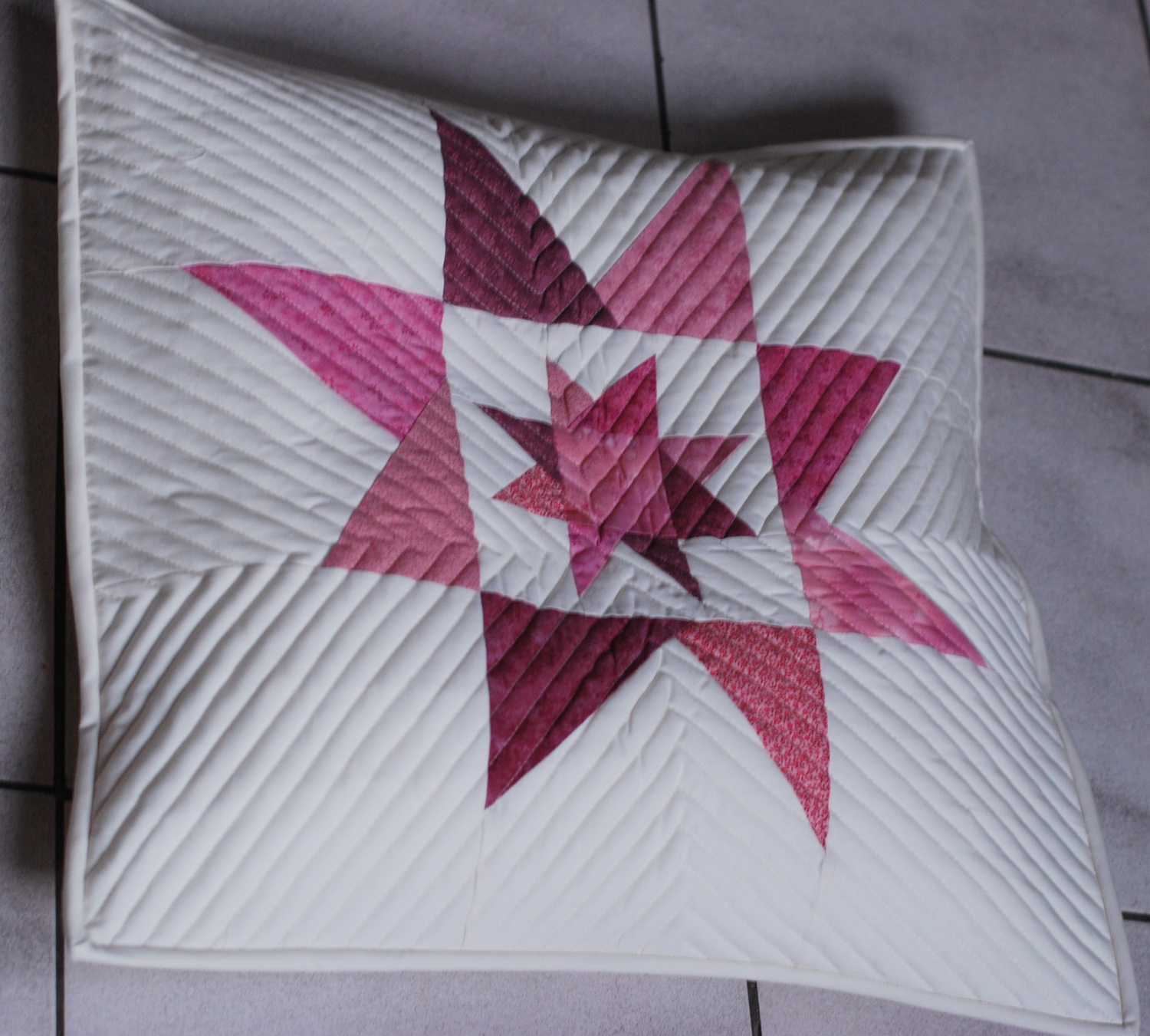 It is quilted by hand. Binding sewn on the front by machine and on the back by hand. The washing was a scary part because of the red fabric. But with 6 color catch wipes it went alright. Marco went to the USA and took the packages with him. Now Cathryn has it I can show it to you.